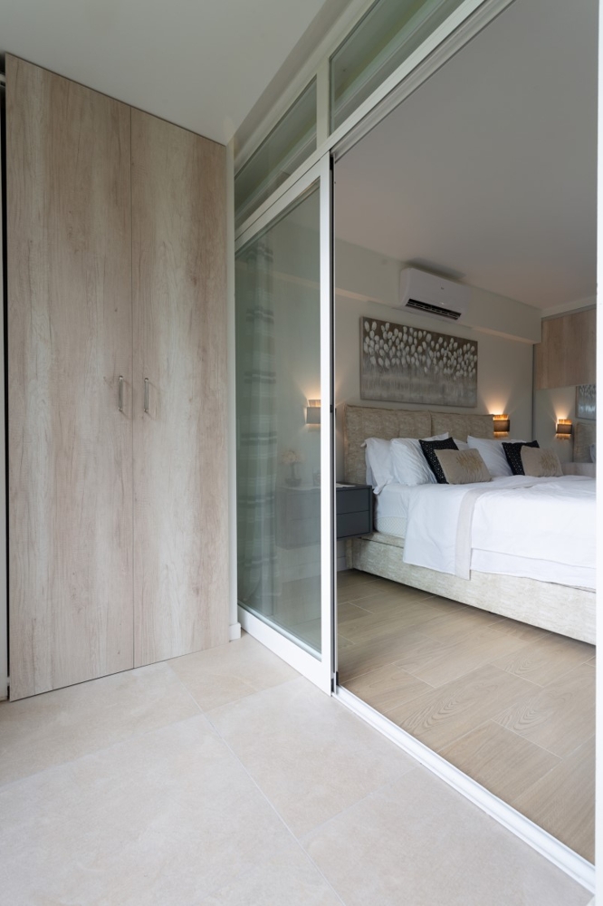 Direct Garden Access: Step outside to enjoy direct access to the communal garden. Relax amid greenery, overlooking a generously sized pool and swaying palm trees.