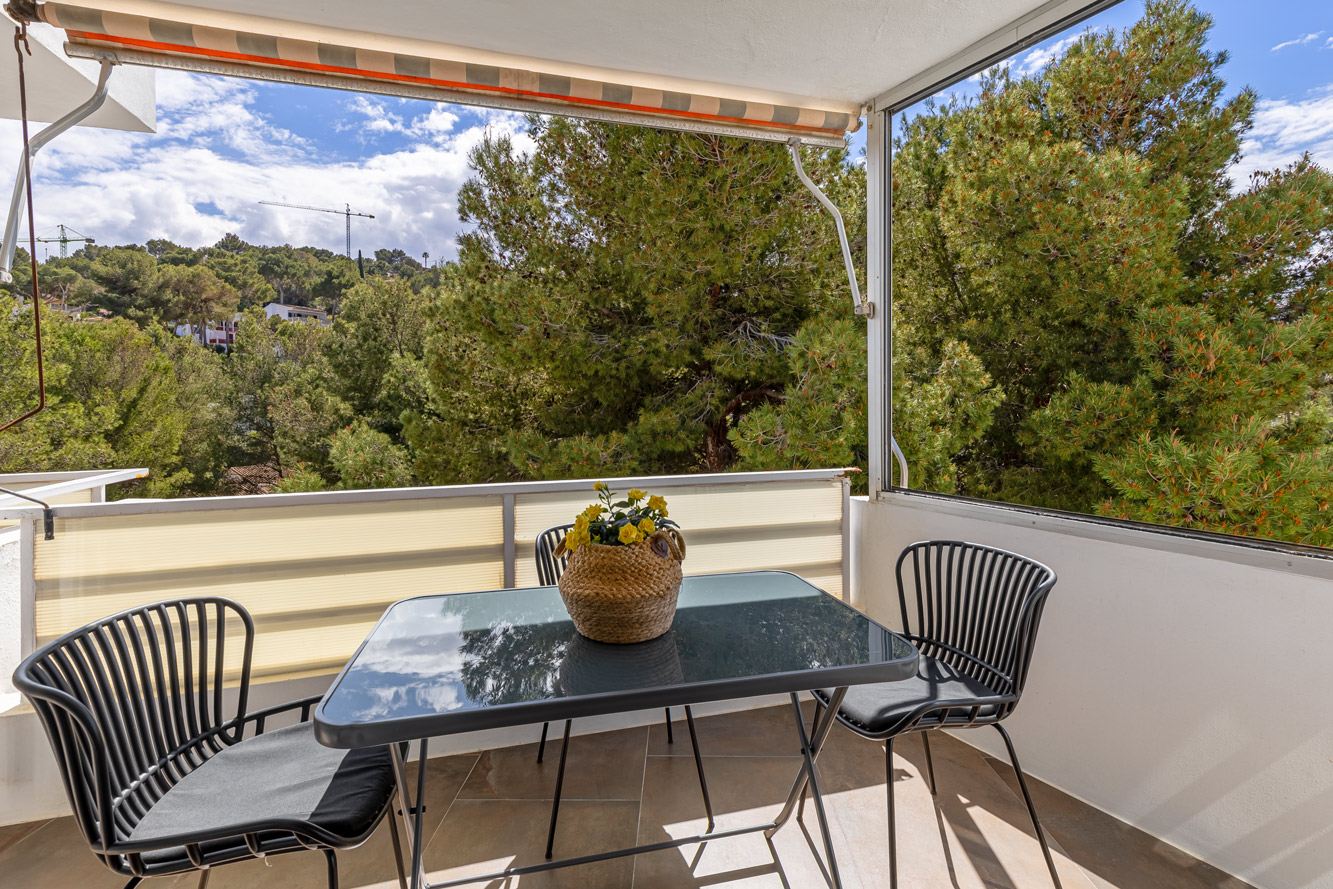 The property is in an extremely quiet location, but there are numerous stores, restaurants, bars, supermarkets and even a tennis court in the immediate vicinity. A significant advantage is the ample parking space! The picturesque bay 'Cala Blanca', which is known for its popular "chiringuito", is only a few minutes' walk away. The beautiful sandy beaches of Peguera and Santa Ponsa are also just a short drive away.