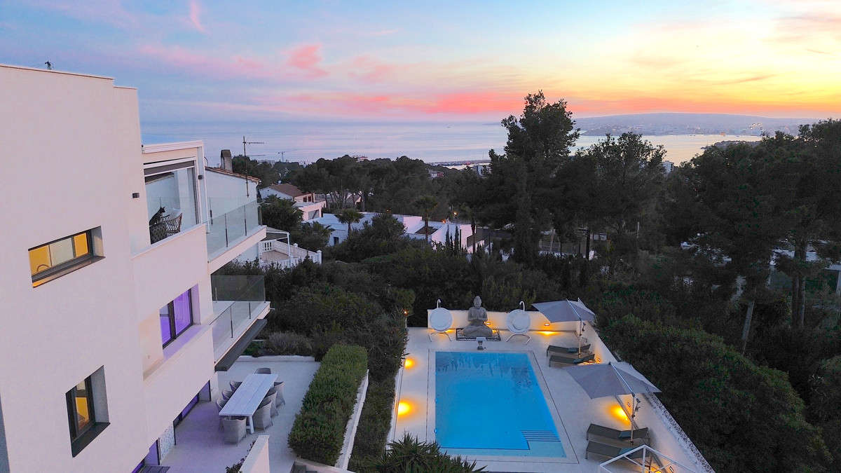 This characterful design villa with beautiful sea views has recently been extensively refurbished and is located in an exclusive residential area of Portals Nous in close proximity to the prestigious luxury marina Puerto Portals. This luxury property offers up to 4 bedrooms, 4 bathrooms, a state-of-the-art open kitchen by Leicht and a spa area with sauna on several levels. One section can be used as a guest studio with its own entrance. Large windows let in lots of light and allow for breathtaking views of the open sea. Part of the balcony with sea view can be converted into a winter garden with sliding glass elements, where, heated by the romantic gas fireplace, you can admire the sunsets even in the cooler season. The technical equipment of the villa is extensive, including air conditioning w/c, underfloor heating with heat pump, BUS system, full thermal insulation of the property, double glazing, osmosis system, electric shutters, camera monitoring and much more. Outside, this high standard continues seamlessly with a multitude of sunny balcony and terrace areas with sea views, the generous saltwater pool with lounge area and a playful property architecture that offers much more than the usual standard properties. Only with an inspection the goodness of this property can be grasped. Please contact us. We are looking forward to meeting you! Your Safehouse TeamFurnishings and fittings