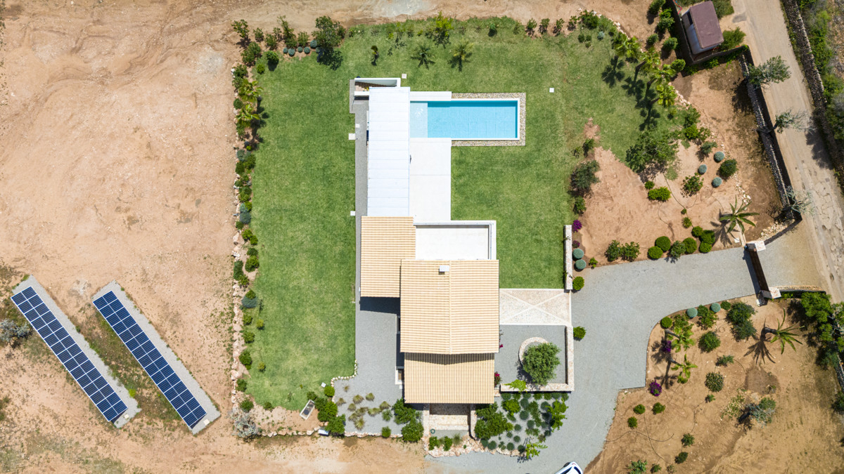 This exceptional finca in traditional Mallorcan style is a real gem in the sought-after south-east of the island. In a privileged location between Ses Salines, Es Llombards and Santanyí, it combines absolute tranquillity with proximity to charming villages, beautiful beaches and the authentic Mallorcan lifestyle.On a plot of approx. 14,677 m², a retreat was created under the construction supervision of Safehouse The Real Estate Group, combining the highest building quality, sophisticated design and attention to detail. Around 2,000 m² were laid out as a Mediterranean garden - with an automatic irrigation system, rainwater storage and a spacious pergola that invites you to relax and enjoy.
