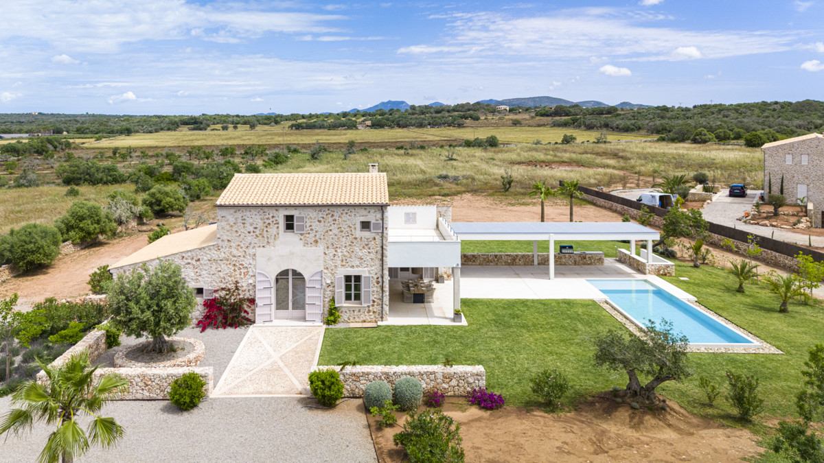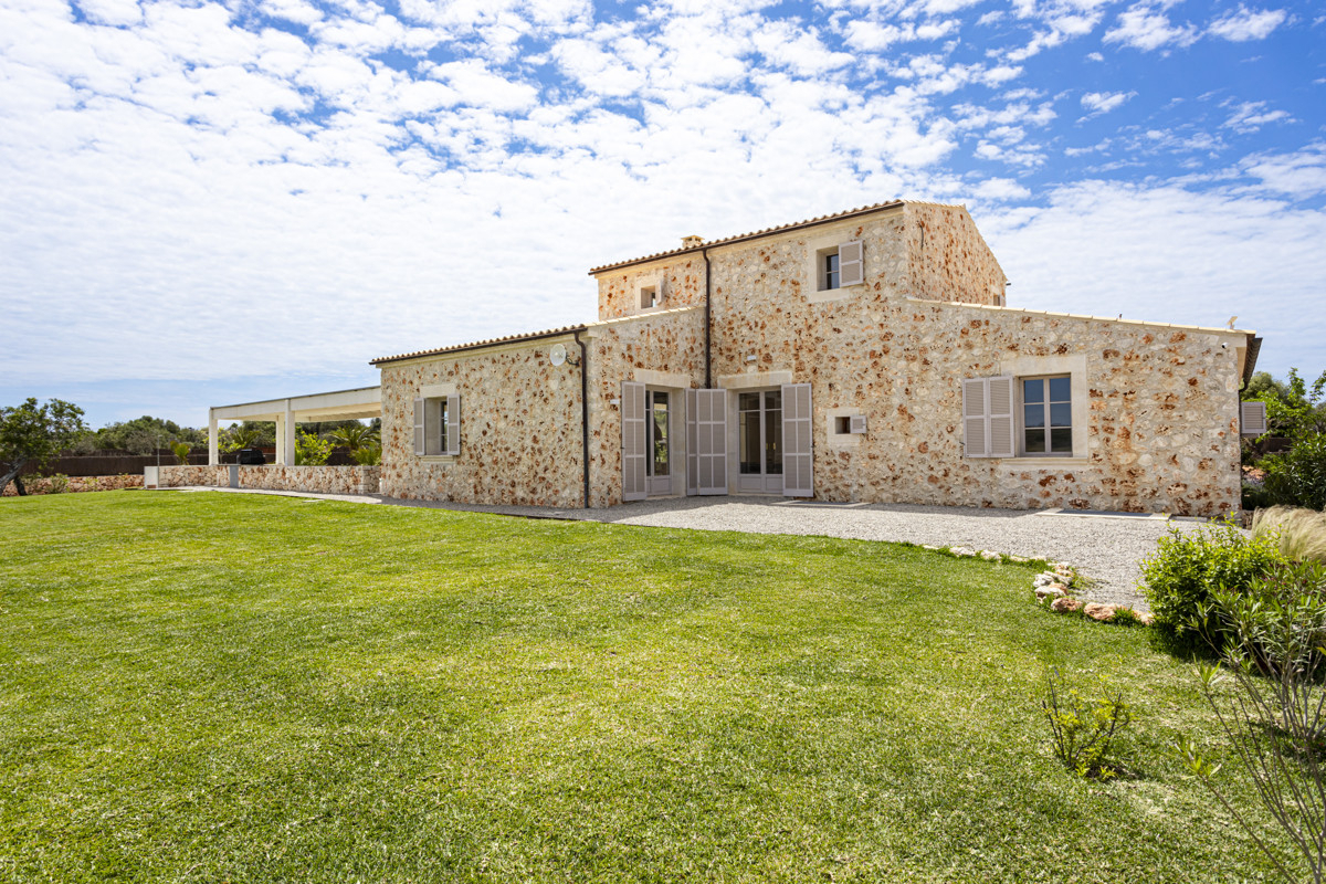 **Beautiful, newly built finca in traditional Mallorcan style - equipped with the most modern comforts and the highest quality standards.The property is in an idyllic yet extremely central location - right between Ses Salines, Es Llombards and Santanyí. These charming villages can be easily reached by car or bicycle in just a few minutes.