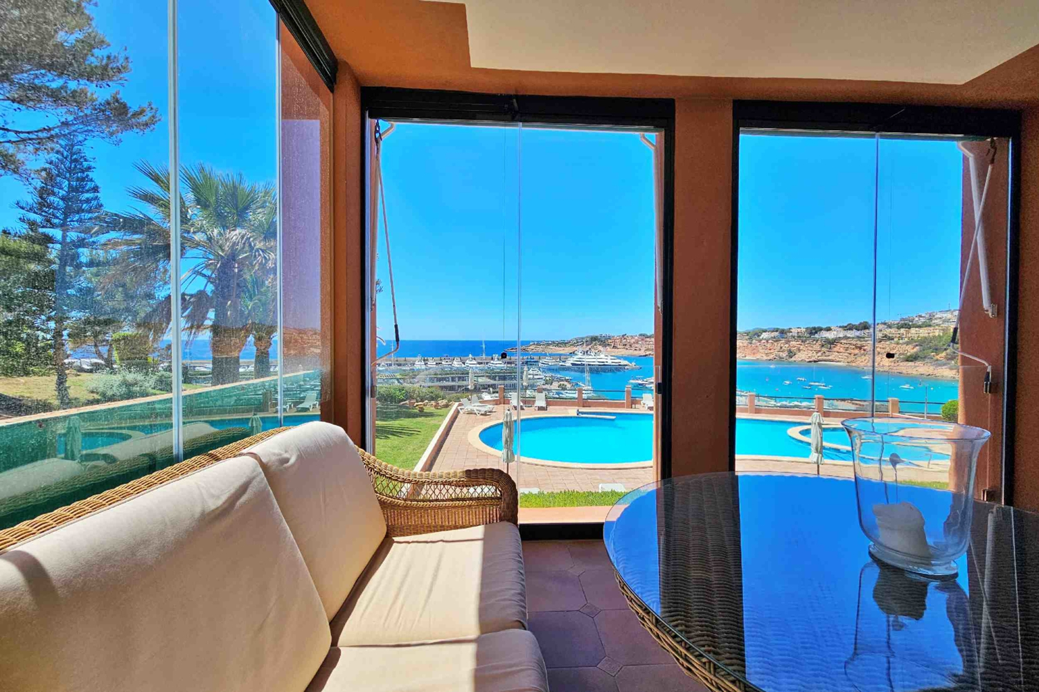 Modern apartment (modernized in 2017), fantastic sea and harbour views, directly at the marina Port Adriano, bright terrace with glazing (can be easily opened), west orientation including beautiful sunsets, large living / dining area with open kitchen, fully equipped modern kitchen with Bosch appliances, 2 bedrooms, 2 bathrooms, fitted wardrobes, double-glazed windows, underfloor heating (gas), air conditioning hot/cold (individual units), wood-look tiled floor (from Italy), top-equipped home cinema system with Bose sound system, furniture included, fiber optic connection for internet, pool area with sea view, elevator, private storage room (approx. 3m²) in the basement, private underground parking space, approx. 300m to the beach and the yacht club, numerous restaurants and stores in the immediate vicinityProperty location