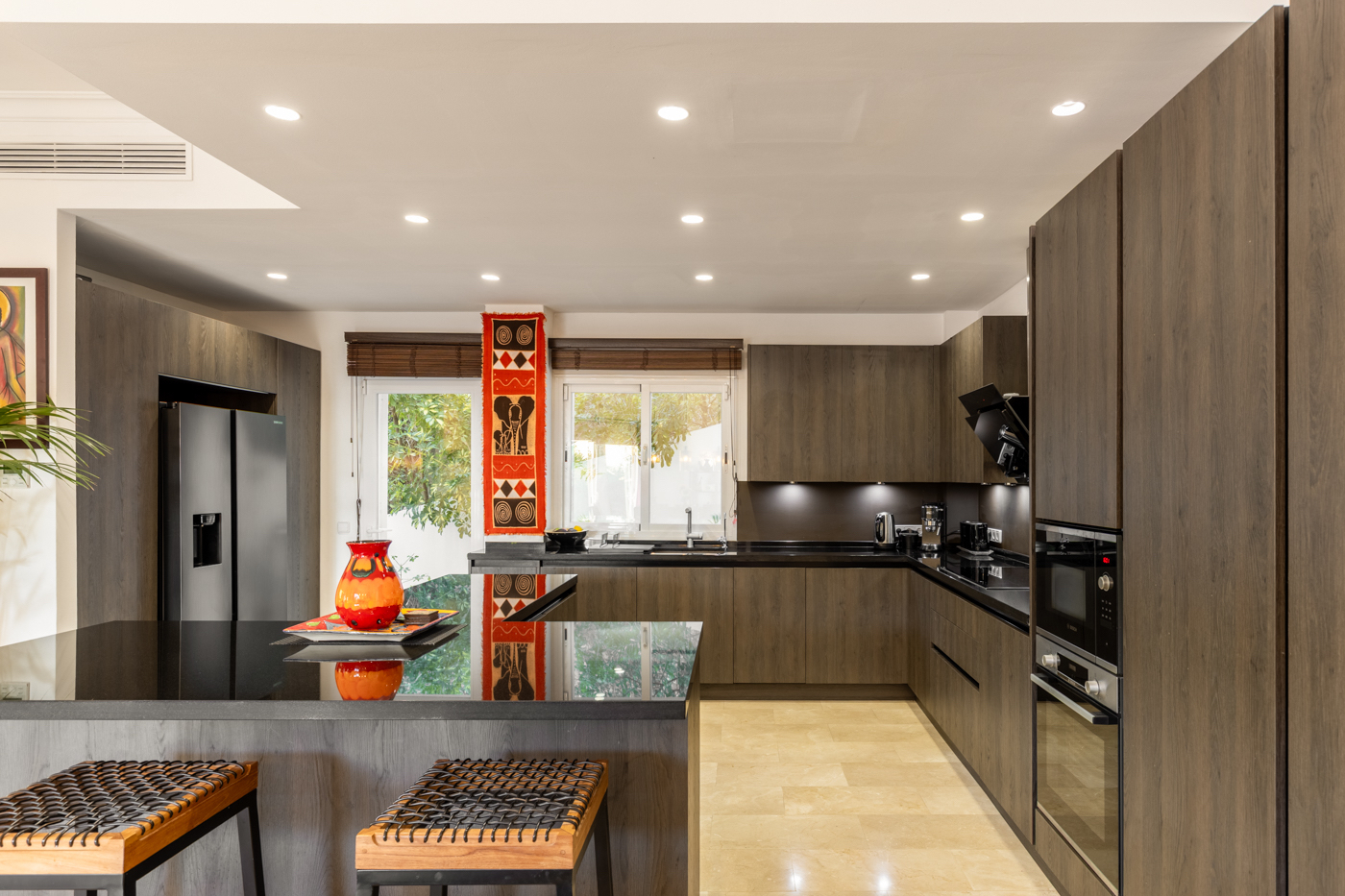 Elegant, open-plan kitchen with dining area