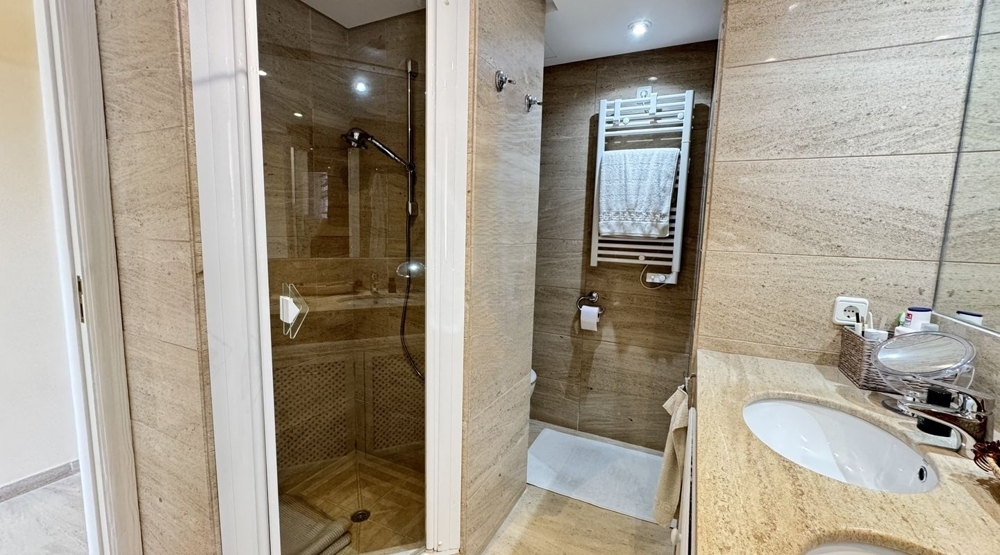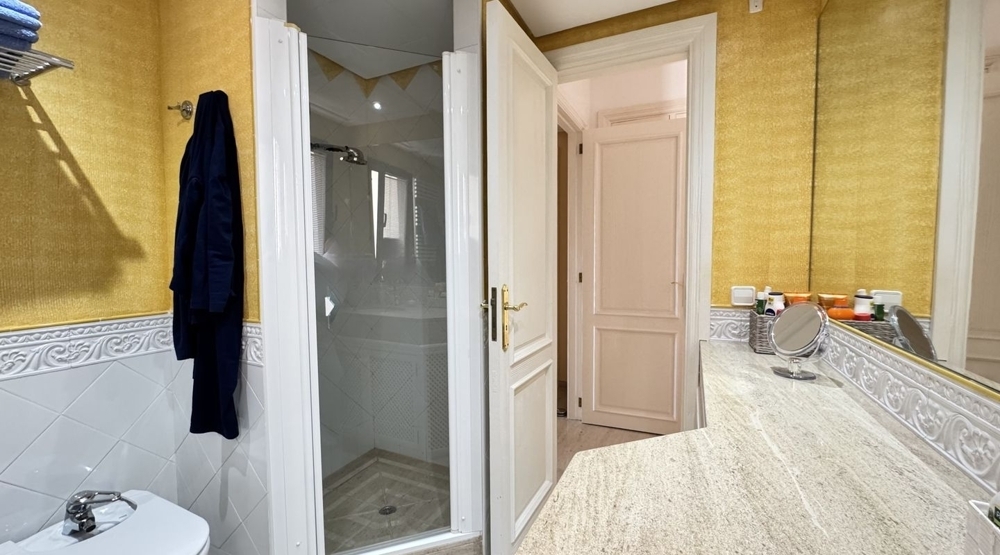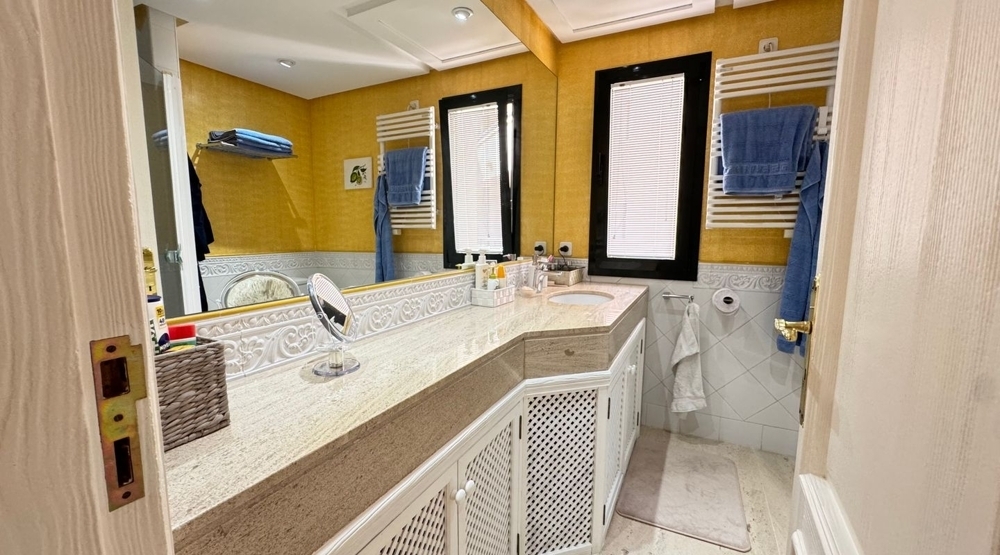Marmorböden, Alu Fenster-Doppelverglasung, Alu Persianas, Klimaanlage kalt/warm, Kamin, Einbauküche, Einbauschränke, SAT-TV, Video Gegensprechanlage, Aufzug, teil möbliert nach Absprache.