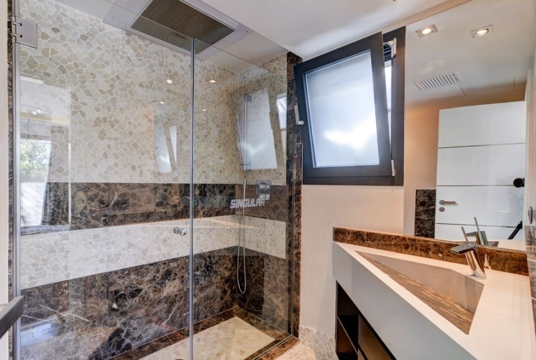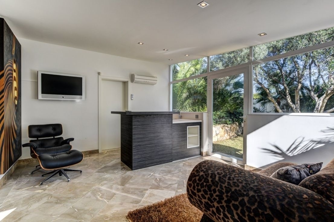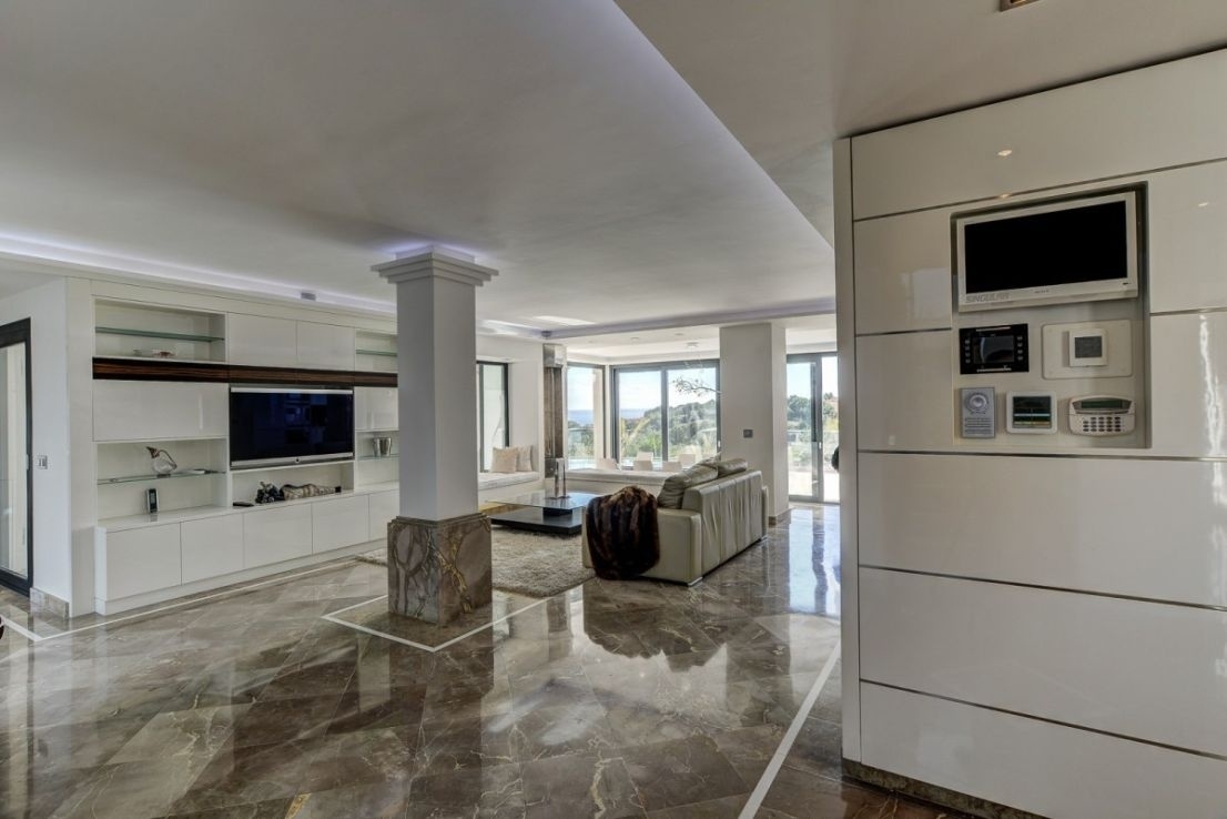 Marble floors, underfloor heating, hot/cold air conditioning, high ceilings in the living room, large panoramic windows, LED technology, 2 gas fireplaces, patio with electric roof, designer kitchen, BBQ area, heated infinity pool, sound system, security system, wine cellar and double garage plus parking space.Property location