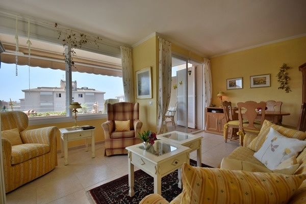 El apartamento con orientación sur ofrece en una superficie construida de unos 90 m2 una zona de entrada, salón-comedor con acceso a la terraza cubierta de 9 m2, cocina totalmente equipada con lavadero, 3 habitaciones dobles y 2 baños (uno en suite). Dos habitaciones comparten un balcón común.
