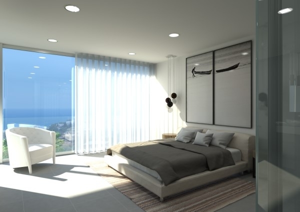 En una ladera en Costa den Blanes, una villa de ensueño y luz inundada con una gran vista del mar y la última tecnología se está construyendo.La parcela tiene un tamaño de 1010 m² y la superficie construida es de 450 m².