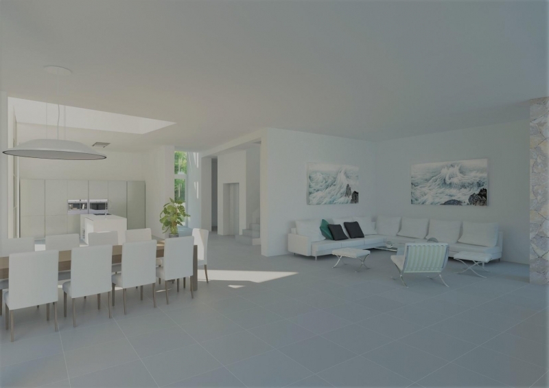 Zona de entrada con un gran salón, una cocina abierta y acceso a la terraza, así como al jardín ya la gran piscina de 22 x 3,50 m.