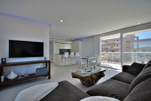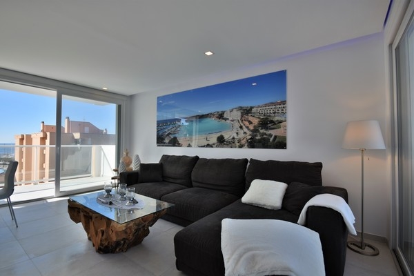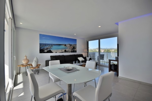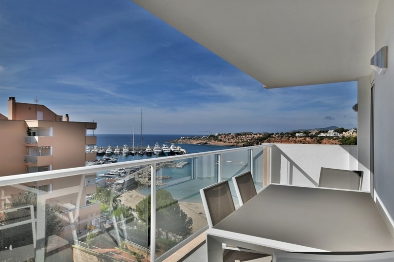 Este luminoso apartamento con vistas al mar y orientado al sur ofrece vistas despejadas al puerto deportivo de Port Adriano y a la playa de arena de El Toro. Desde el complejo residencial, una escalera conduce directamente al puerto.La reforma integral de esta propiedad está completada y hace que el apartamento aparezca con un nuevo esplendor. La superficie construida de aprox. 116 m2 tiene un amplio salón/comedor con preinstalación para chimenea, cocina moderna y abierta, equipada con isla de cocina y acceso a dos balcones (unos 9,60 m2 + 6,40 m2), pequeño lavadero, dormitorio principal con vestidor y baño en suite, segundo dormitorio con acceso al balcón y segundo baño con ducha.