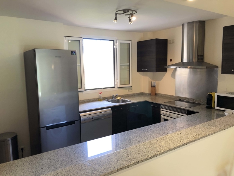 2 dormitorios, uno con baño en suite y baño y otro separado con Ducha, amplio salón / comedor con cocina abierta / escotilla y una terraza de unos 20 metros cuadrados.