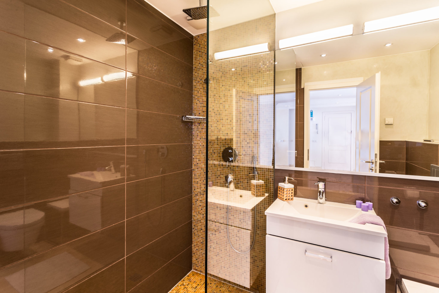 El apartamento está en la parte superior, 3er piso, con ascensor desde el garaje subterráneo. Fue completamente renovado y equipado con calefacción por suelo radiante.
