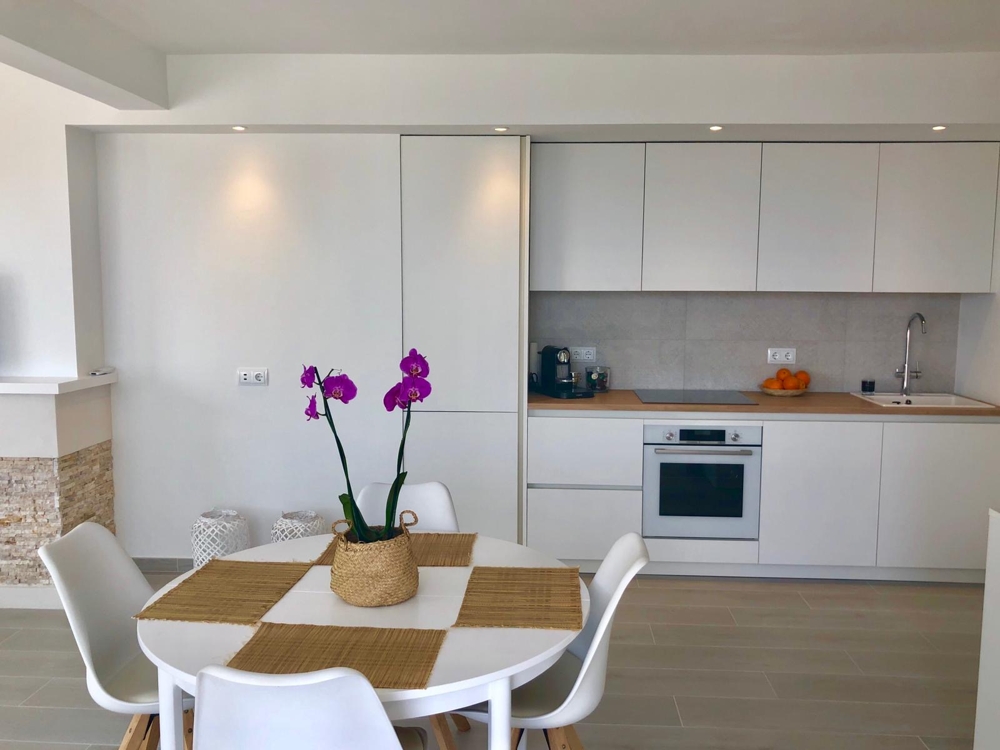 Hermoso apartamento luminoso con vista al mar a 100mtrs del Chiringito en Palmanova. A poca distancia de tiendas, restaurantes, oficina de correos, puerto y playa.El apartamento ha sido completamente renovado y ofrece 2 dormitorios, 1 baño en suite y un 2º baño, hermosa cocina abierta y una chimenea en el salón.