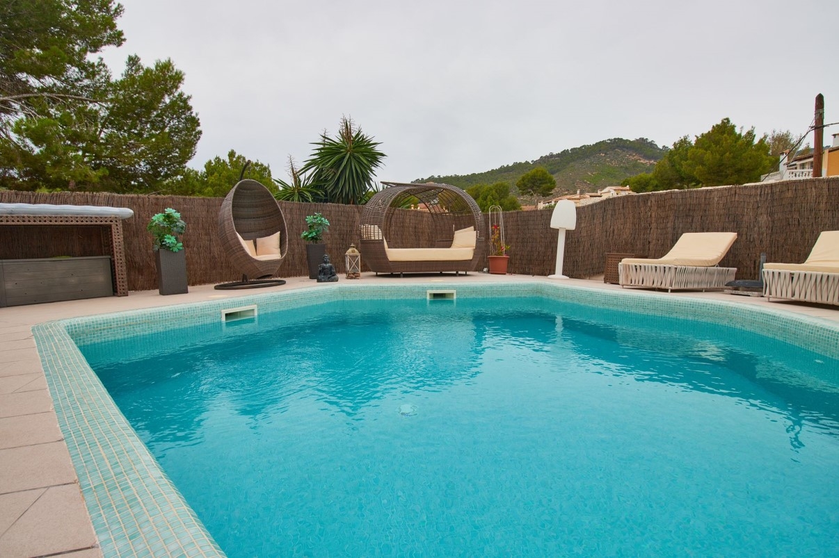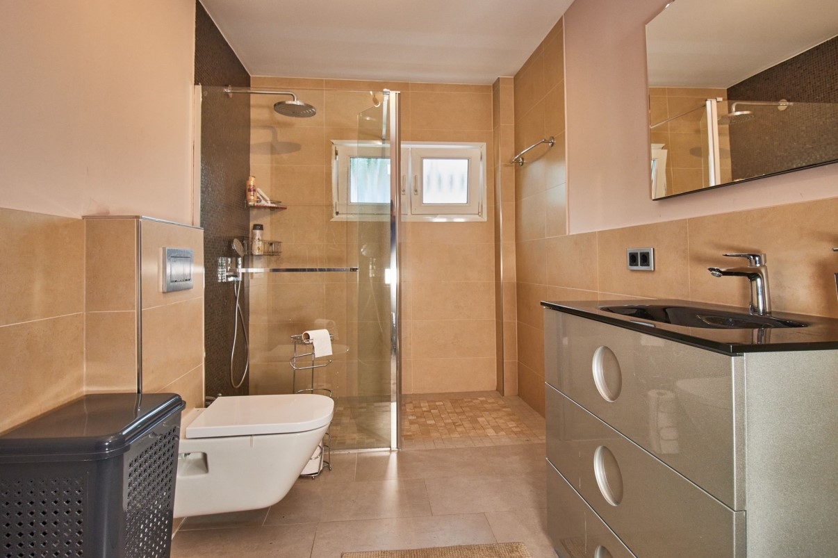 Precioso chalet en Paguera, completamente renovado hace 4 años. Al final de un callejón sin salida y cerca de todos los servicios se encuentra esta propiedad especial.La casa se compone de una zona de estar superior con 3 dormitorios y 3 baños y 3 pisos sep. en la parte inferior de la casa. La zona superior tiene calefacción por suelo radiante. Todos los pisos tienen calefacción central y acceso a las terrazas.