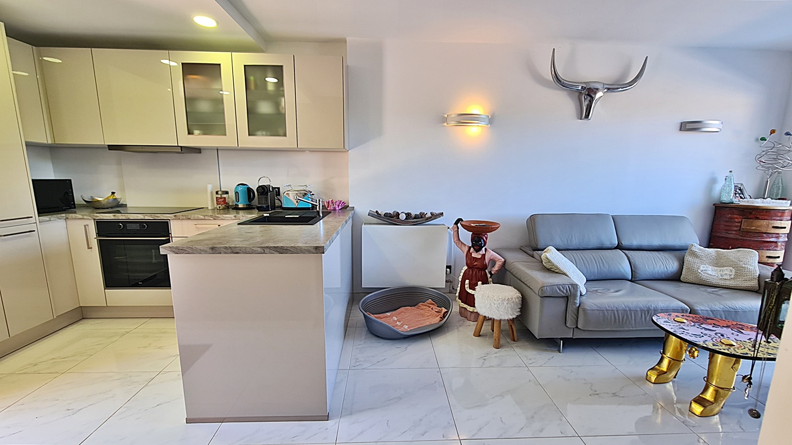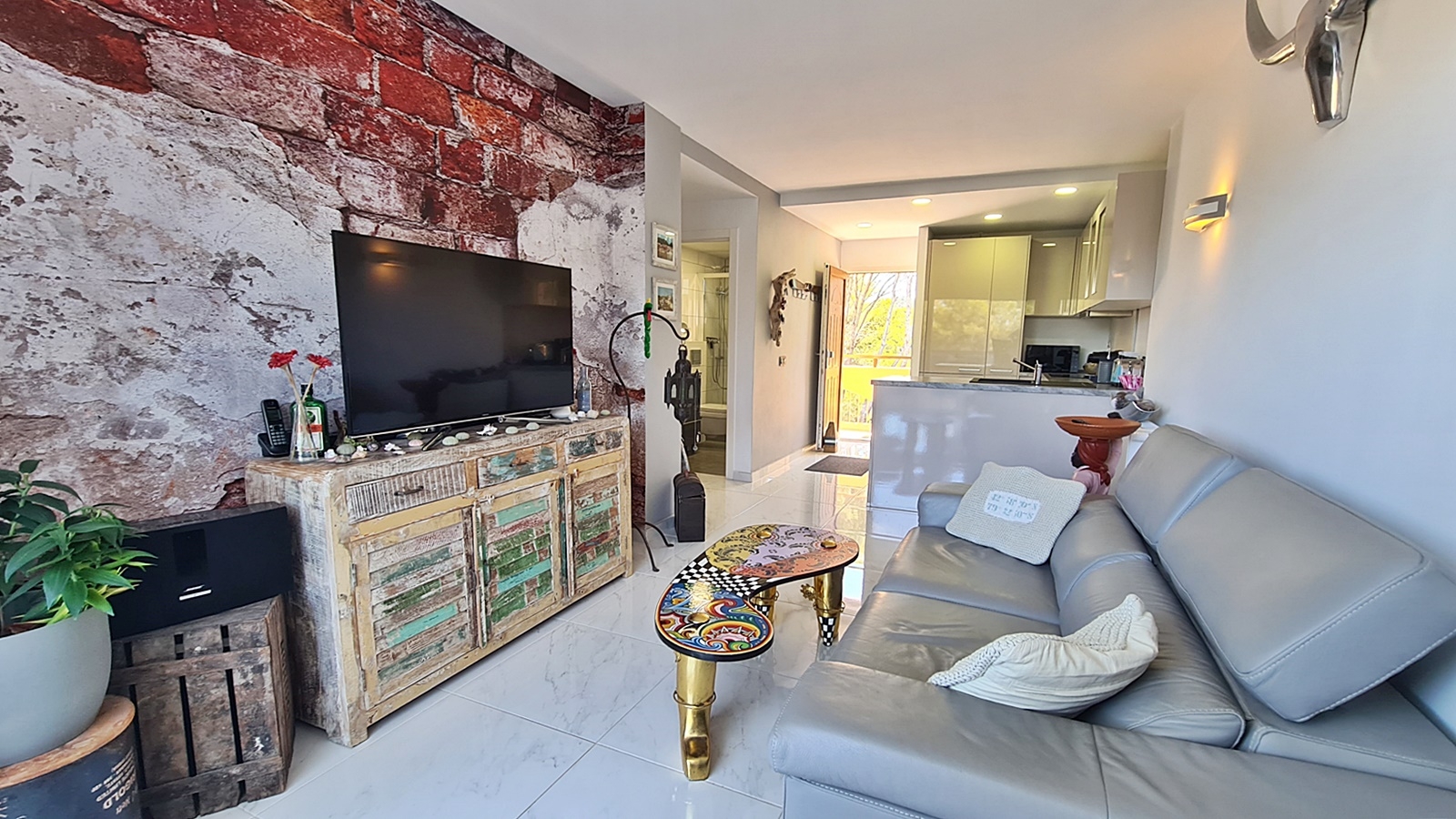 Piso super bien en estado nuevo en zona tranquila pero céntrica, a poca distancia de la playa.68 metros cuadrados según el registro de la propiedad, 2 dormitorios, 2 baños, salón-comedor, cocina americana equipada, calefacción central de gas, aire acondicionado f/c, la terraza con ventana acristalada fue añadida al salón.