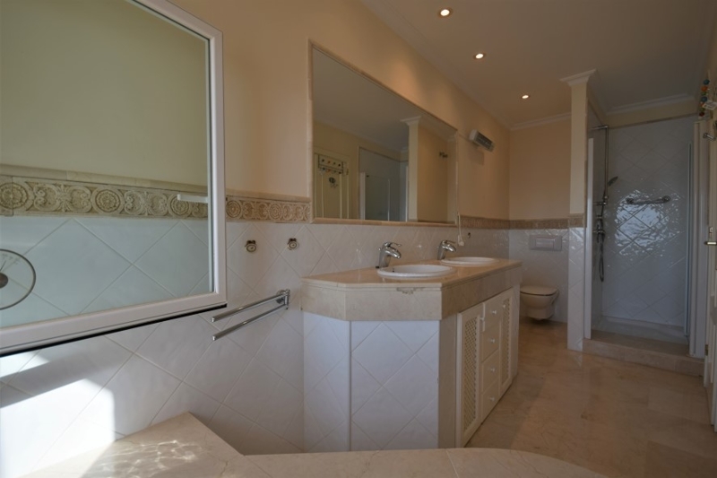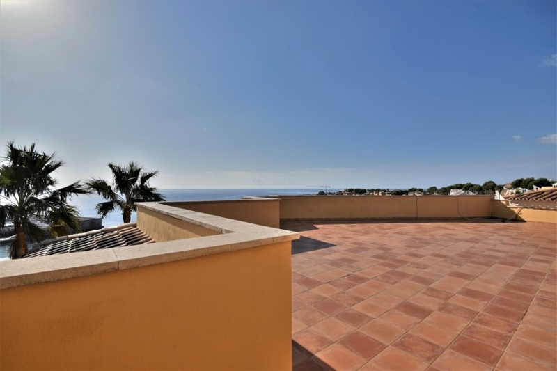 El ático ofrece en una superficie construida de aprox. 130 m2 un salón-comedor, cocina equipada con lavadero, 3 dormitorios y 3 baños (uno en suite con jacuzzi). El salón y el dormitorio principal tienen acceso a la terraza con vistas al mar. Desde la terraza privada de la azotea, de unos 60 m2, hay una fantástica vista del mar y de los alrededores.El complejo ofrece una hermosa piscina comunitaria con una amplia terraza y ducha exterior. El edificio está equipado con un ascensor que conduce a las dos plazas de aparcamiento subterráneo privado con sus trasteros.