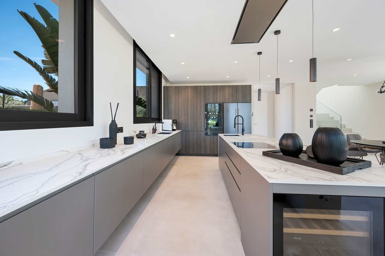 Calefacción por suelo radiante con bomba de calor, aire acondicionado f/c, ventanas de calidad, suelos de baldosas de piedra natural, cocina con electrodomésticos Gaggenau, persianas eléctricas, plaza de aparcamiento en la propiedad, entrada eléctrica, portero automático, tratamiento de agua, sauna y mucho más