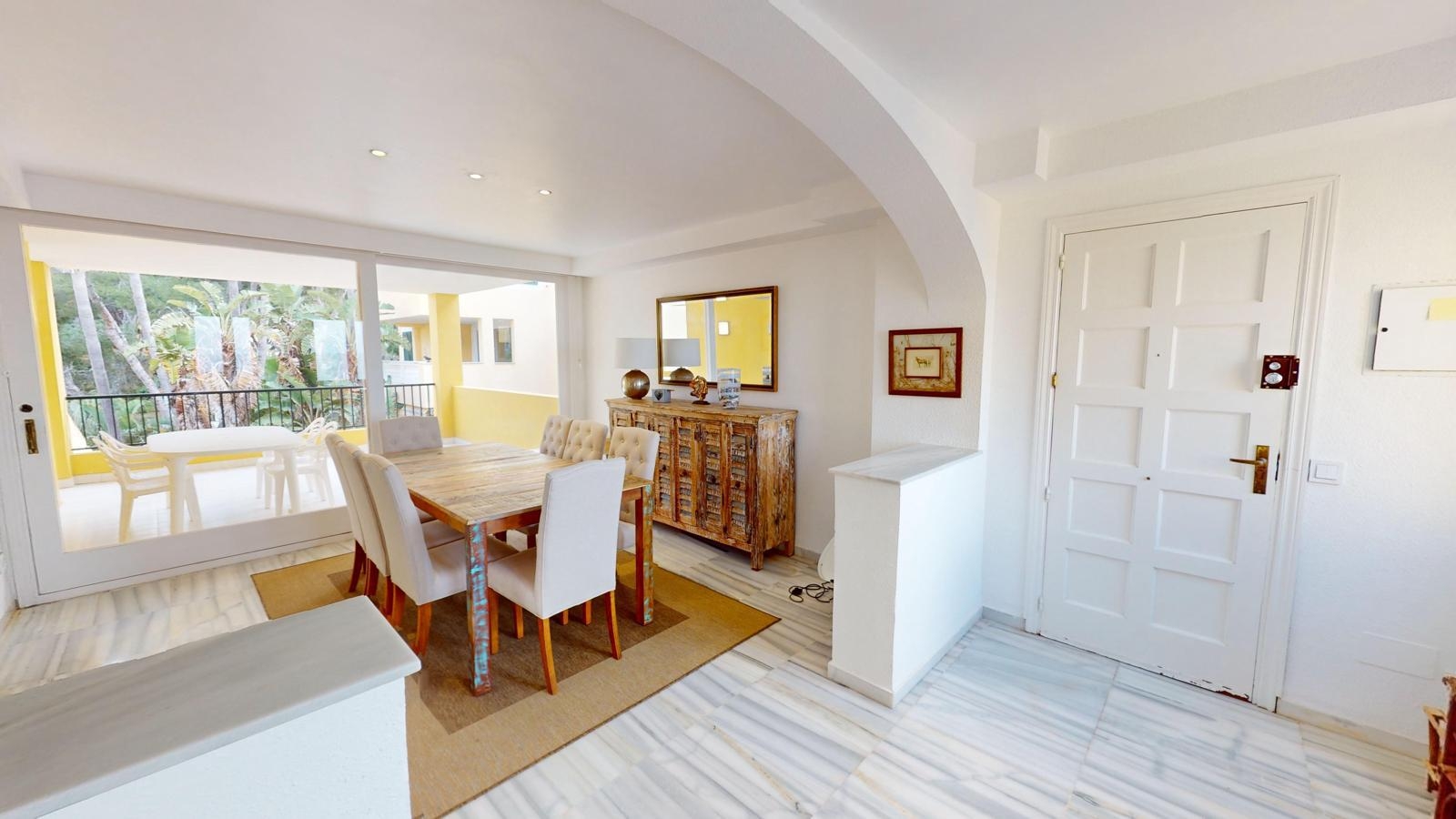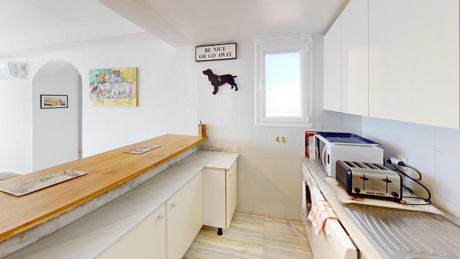El complejo residencial está cerrado y sólo se puede abrir con un código de acceso y hay una plaza de aparcamiento privado. Hay un amplio aparcamiento para los huéspedes u otros coches en frente del complejo.