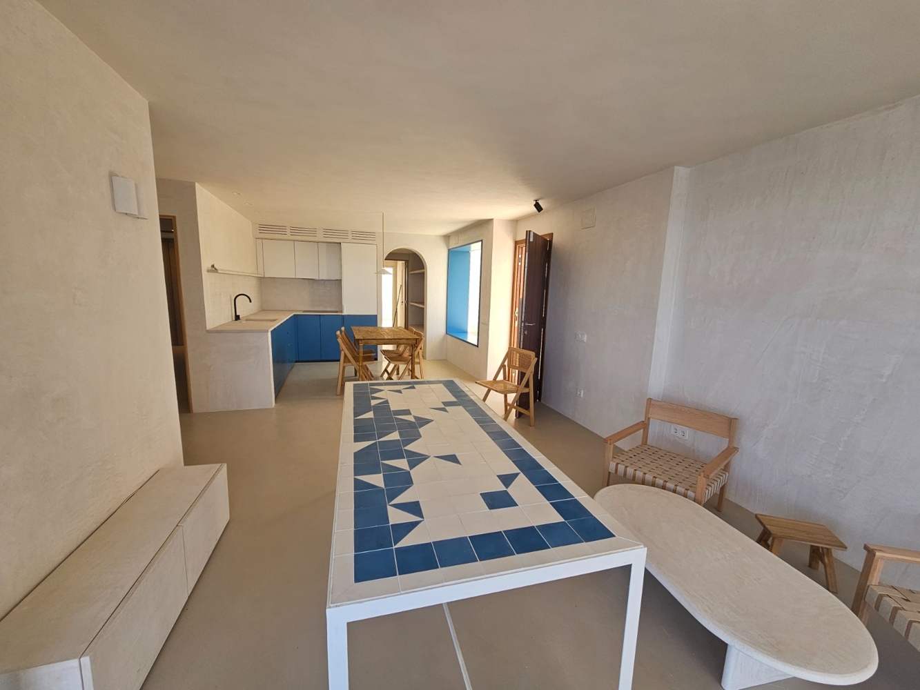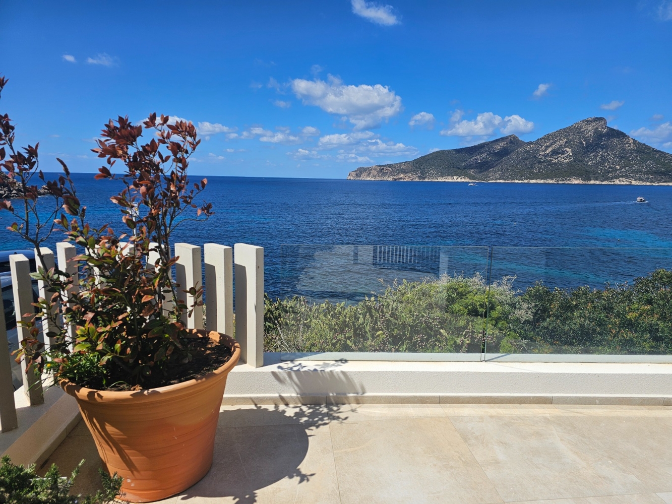 Por fin una auténtica casa en la playa. Usted puede sentir el verano en todas partes aquí, tanto en términos de estilo y ubicación. Usted tiene acceso directo a la playa de Sant Elm y todo ha sido construido con los mejores materiales y maravillosamente pensado. Lo único que falta es su propio estilo.El piso está situado justo al lado de la playa y ofrece 86 metros cuadrados de espacio habitable con 2 dormitorios, 2 baños, una sala de estar con cocina americana y una terraza de 104 m2 que rodea el piso por 2 lados. La vista de la Isla del Dragón es simplemente fantástica.