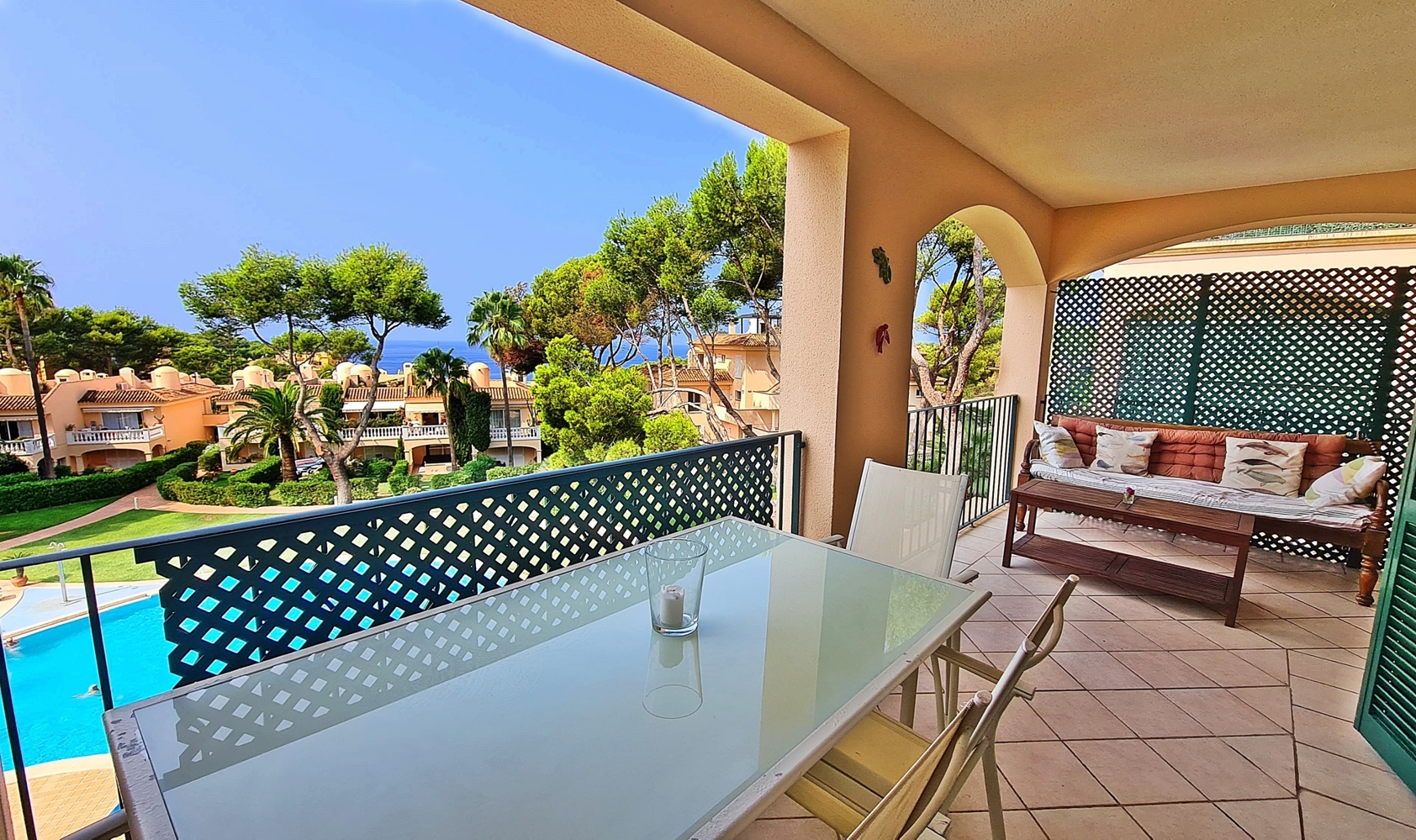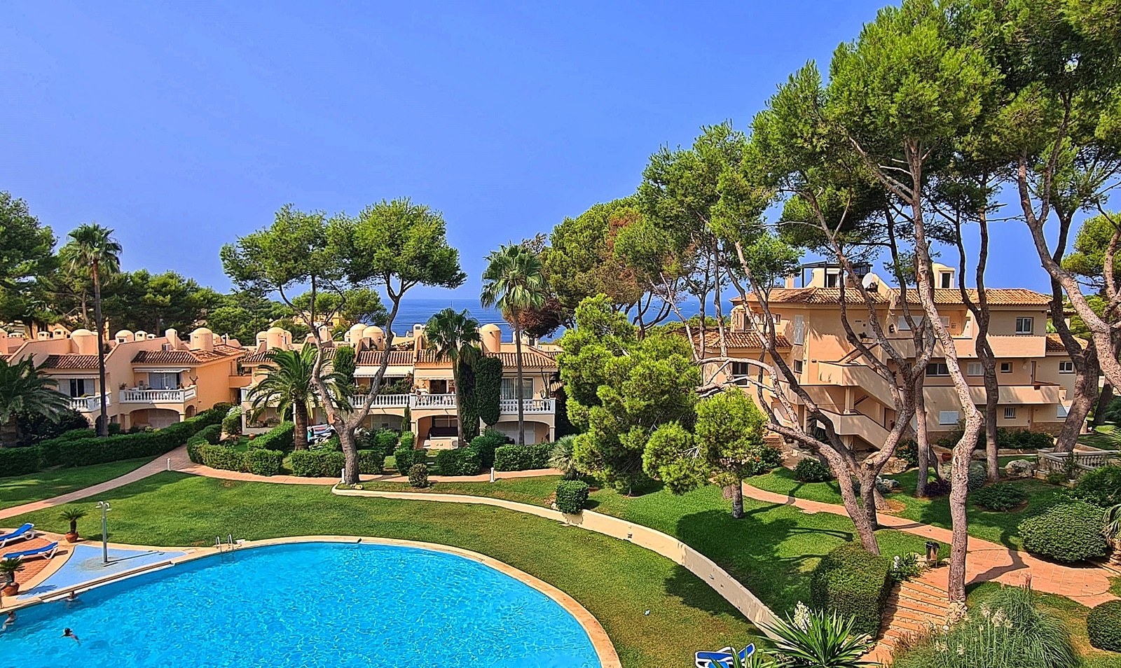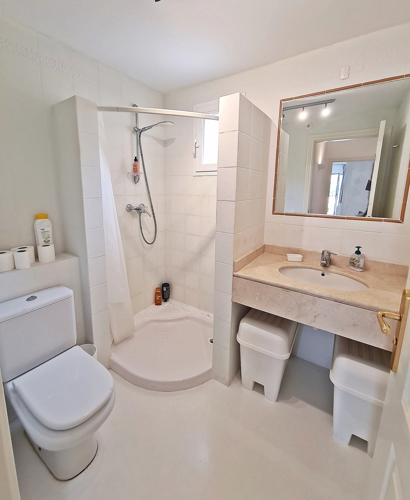 Precioso piso en complejo muy bien cuidado con gran piscina y jardín comunitario. 112 m² habitables más aprox. 30m2 de terraza con vistas al mar y orientación sur. 2 dormitorios, 2 baños nuevos, 1 en suite, cocina amueblada con gran lavadero.Al puerto deportivo de Port Adriano se llega en pocos minutos, así como a las bonitas playas, restaurantes, colegios, centros médicos, campos de golf y mucho más.