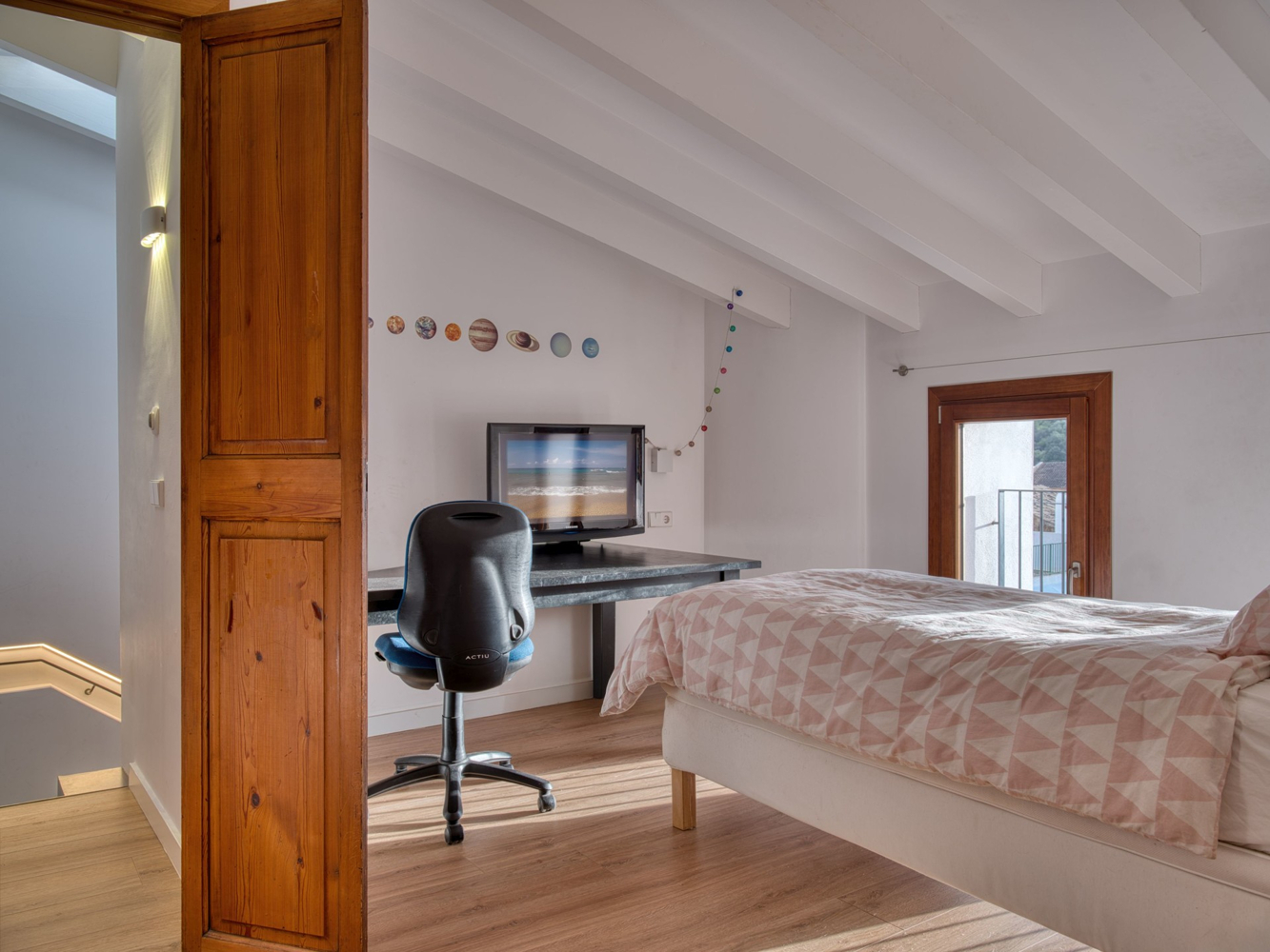 Esta maravillosa casa combina el confort moderno con el encanto de la vida tradicional del pueblo para crear una experiencia de vida verdaderamente armoniosa y lujosa. Los toques de las tradicionales paredes de piedra de "marés" se han conservado cuidadosamente y aportan un toque de carácter clásico mallorquín al entorno.Esta espaciosa y moderna casa adosada ofrece una zona de estar de planta abierta con una cocina Valdesign totalmente equipada y acabados en piedra de Binissalem. La casa consta de 3 plantas y ofrece 5 amplios dormitorios, 4 baños, una piscina privada y un jardín.