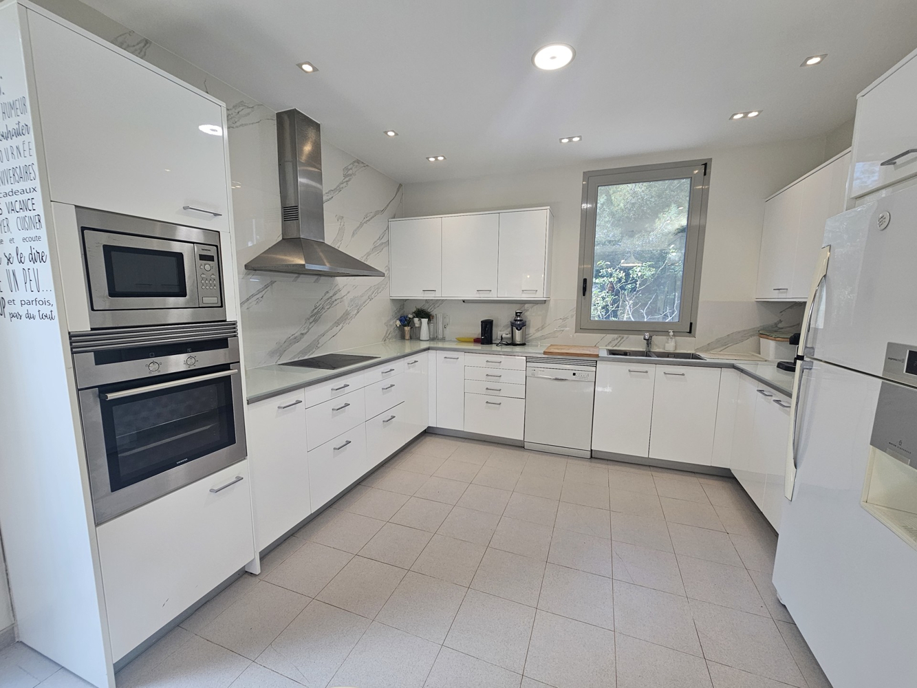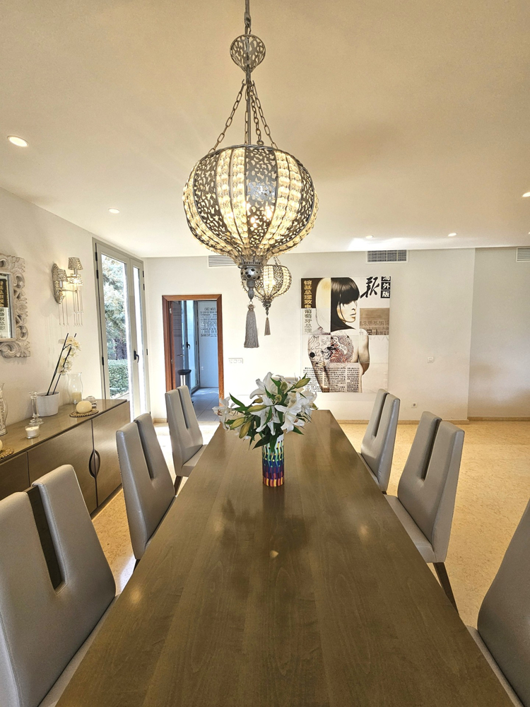 La cocina, totalmente equipada, es el paraíso de los amantes de la cocina y tiene todo lo necesario para preparar comidas gourmet. Cuatro frigoríficos -no sólo en la cocina, sino también en la zona del bar exterior- proporcionan un amplio espacio de almacenamiento para alimentos y bebidas. Un gran lavadero independiente para lavar y secar la ropa contribuye a la practicidad de la villa.
