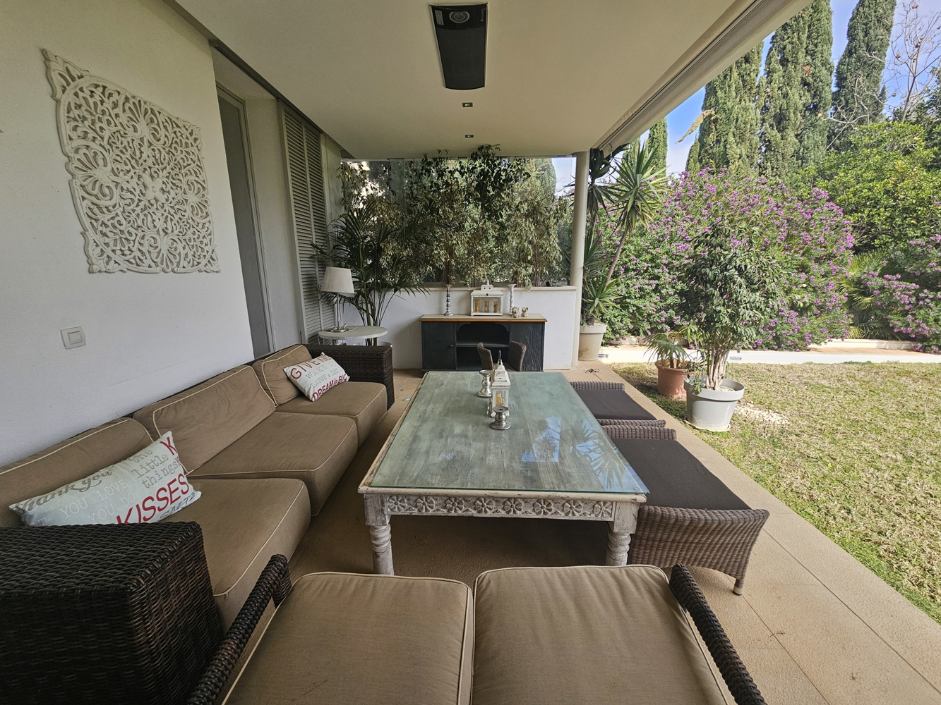 A pocos minutos de la playa, esta villa permite disfrutar del estilo de vida mediterráneo en todo su esplendor. Con aparcamiento privado para seis vehículos.