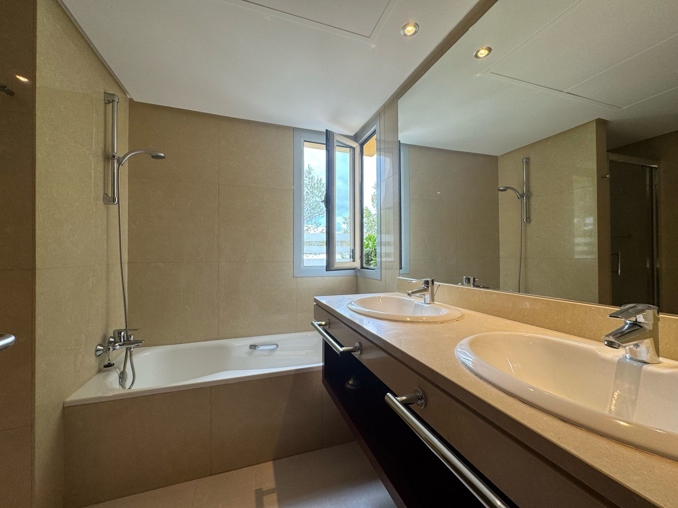 El ático dispone de dos dormitorios y dos modernos cuartos de baño, incluido un dormitorio principal con cuarto de baño en suite y un amplio vestidor. El salón-comedor de planta abierta crea una sensación de amplitud y ofrece acceso directo a la terraza de la azotea, perfecta para un estilo de vida mediterráneo.