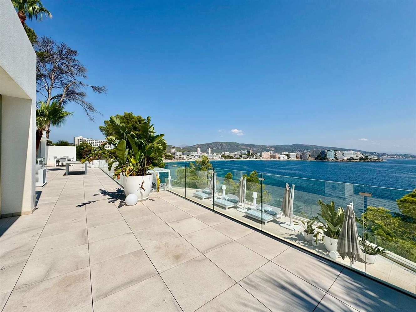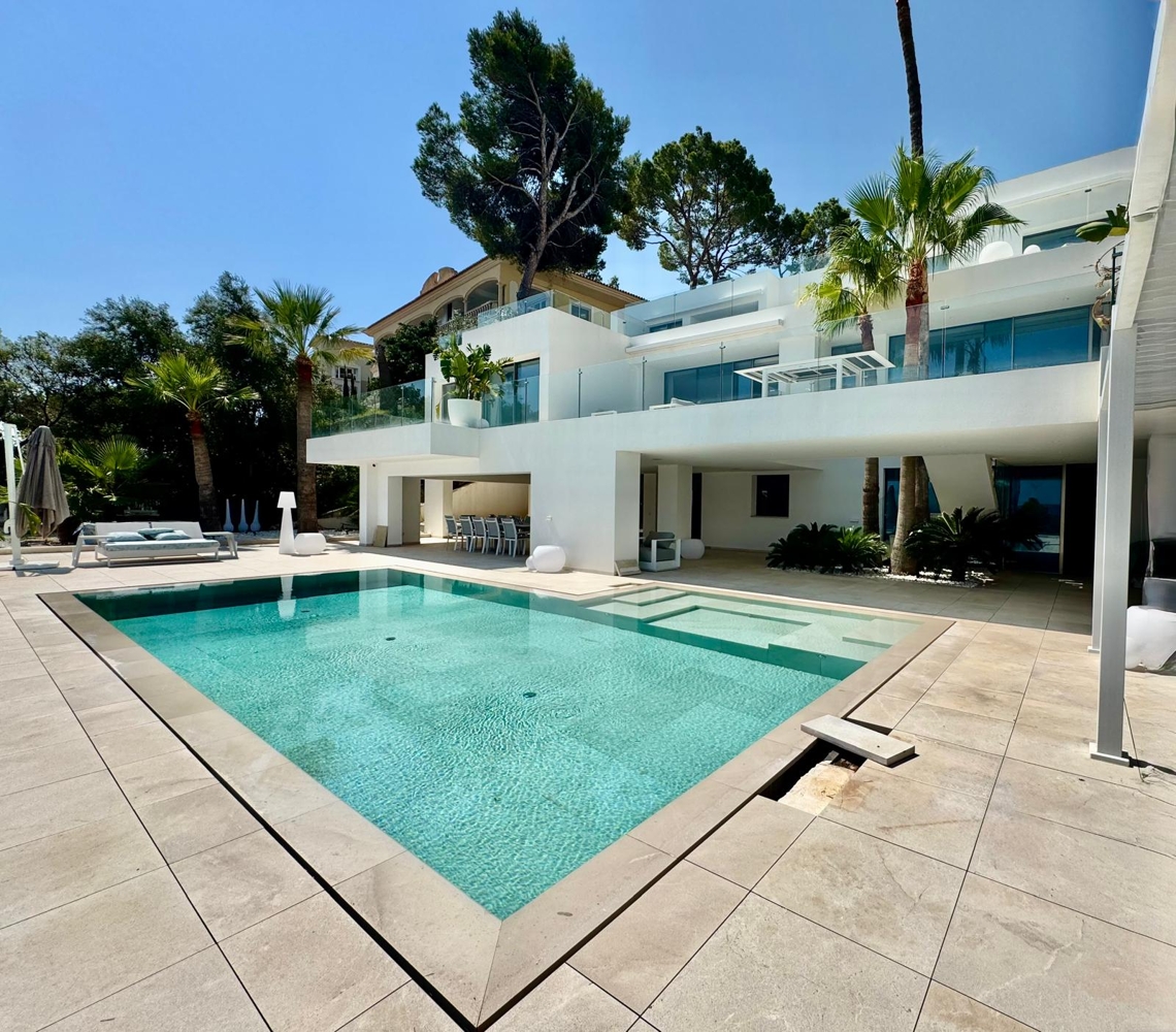 En primera línea de mar absoluta y con una incomparable vista panorámica de 180° de las playas de Magaluf y Palmanova, así como de la entrada del puerto de Palma, esta villa de lujo a estrenar es el epítome de la elegancia mediterránea y el confort moderno.En una generosa parcela de 1.400 m², la residencia ofrece una superficie útil de aproximadamente 600 m² más amplias terrazas soleadas - una obra maestra arquitectónica que cumple con los más altos estándares.