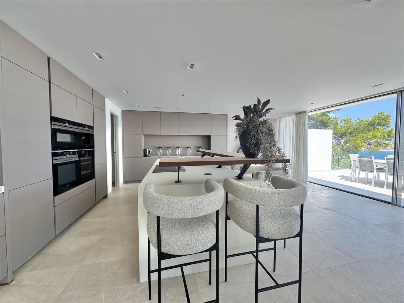 - Amplia terraza principal en el nivel de vida + otra gran terraza junto a la zona de la piscina (parcialmente cubierta con cocina al aire libre)